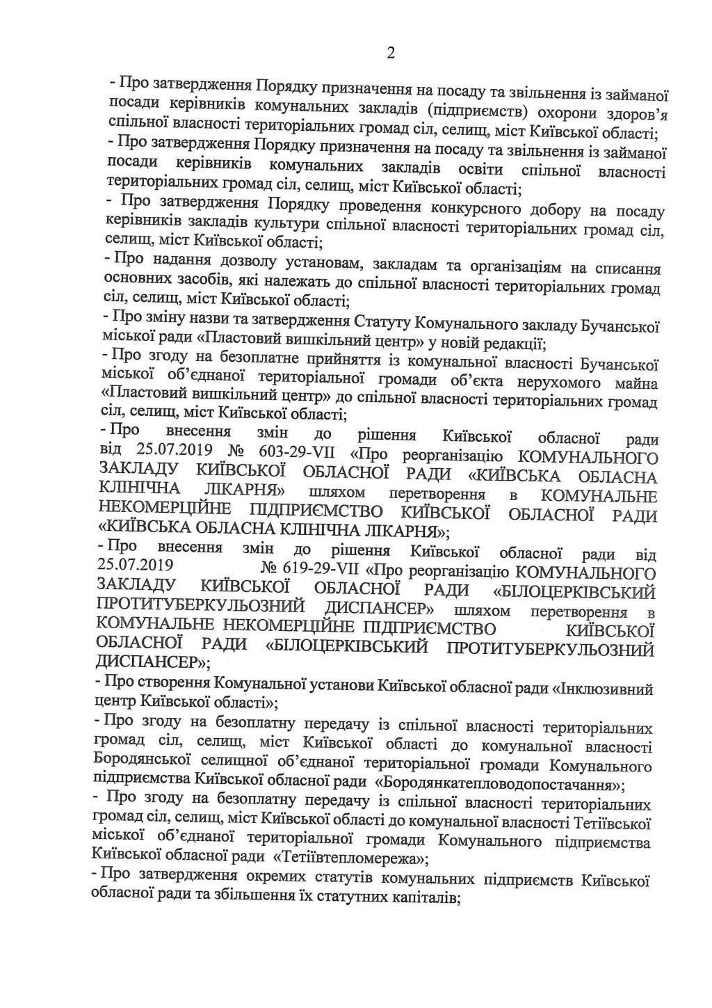 19 вересня відбудеться позачергова 30-а сесія Київської обласної ради. На порядку денному налічується понад 50 питань, які, зокрема, стосуються припинення повноважень двох депутатів, реорганізації комунальних підприємств, створення інклюзивного центру, змін до програм, обласний бюджет та інше.