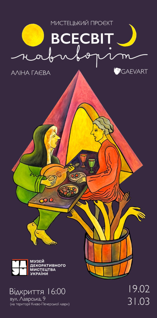 19 лютого о 16. 00 у Національному музеї декоративного мистецтва України відкривається новий мистецький проєкт «Всесвіт навиворіт», який презентує твори відомої сучасної художниці Аліни Гаєвої.