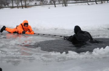 У Вишгороді на Київщині пройшли спільні показові навчання поліцейських столичної області та працівників ДСНС щодо забезпечення безпеки громадян під час купання у крижаній воді. «Сьогодні у Вишгороді відбулись спільні показові навчання співробітників поліції столичної області та працівників Державної служби надзвичайних