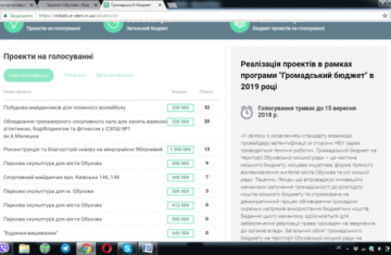 З 1 вересня в Обухові розпочалося голосування за проекти громадського бюджету. Про це повідомляють Хроніки Обухова. На сьогодні є 2 попередні лідери: 1. Проект з розбудови майданчиків для пляжного волейболу (32 голоси); 2. Проект, котрий передбачає обладнання тренажерного спортивного залу для занять важкою атлетикою, бодібілдингом та